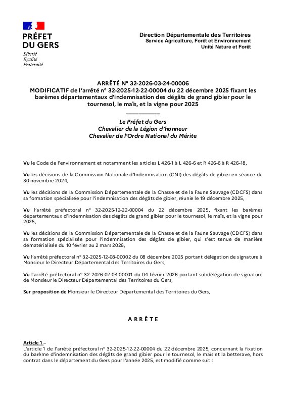 32 2026 03 24 00006 Apmodif Indemnisation Degats MaïS Tournesol Vignes