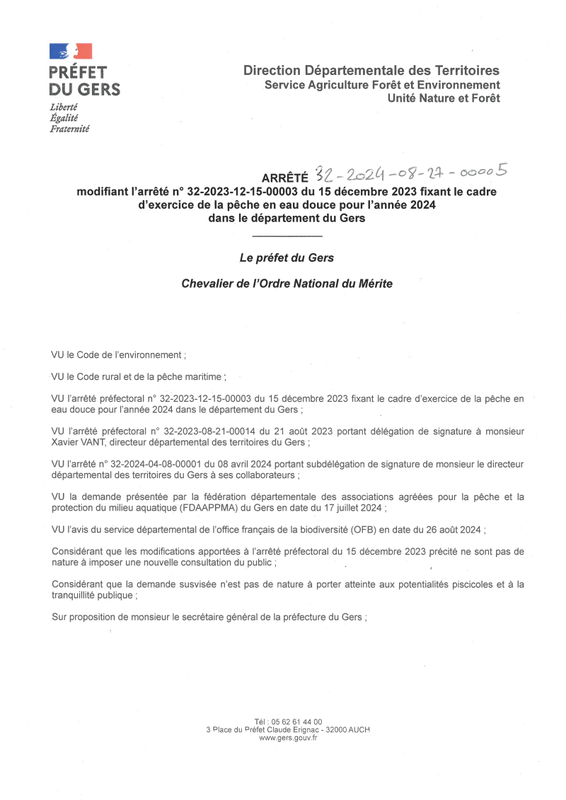 Ap N° 32 2024 09 12 00002 RèGlementant PréLèVement Gers Signé