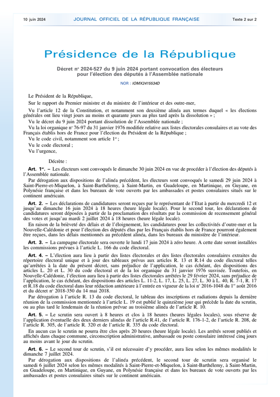 DéCret Du 9 06 2024 Convocation ÉLecteurs