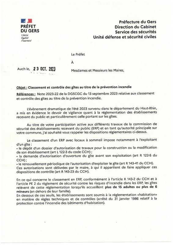 Classement Et ContrôLe Des GîTes Au Titre De La PréVention Incendie