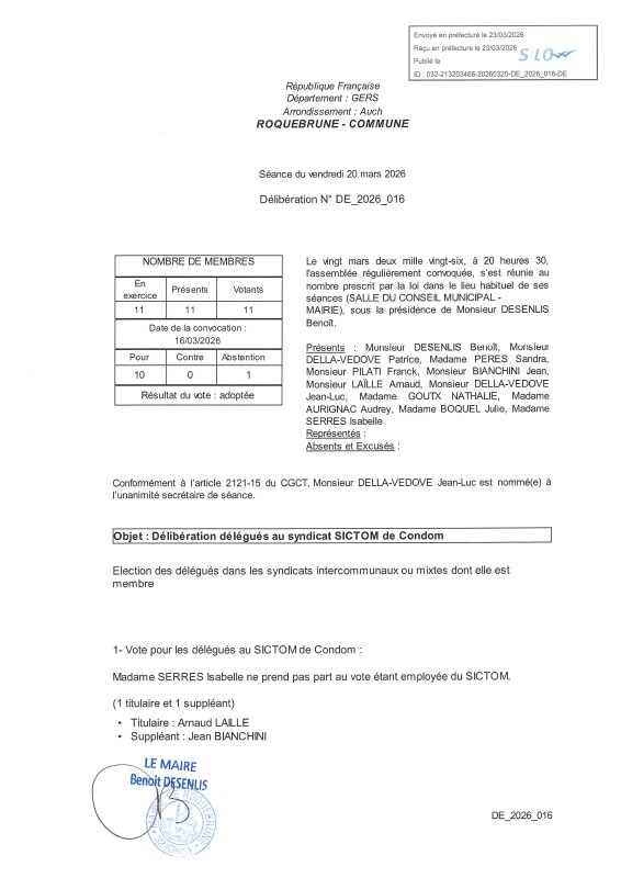 DéLibéRation DéLéGué Sictom