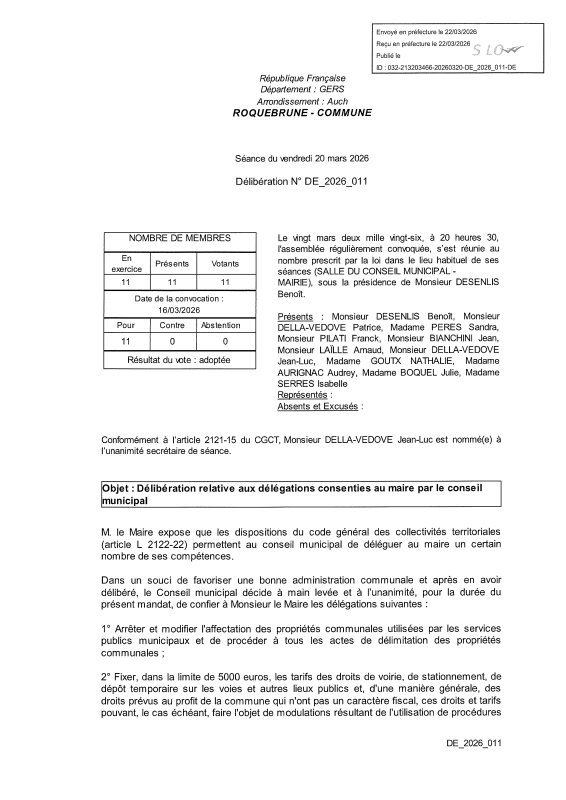 DéLibéRation Des DéLéGations Au Maire