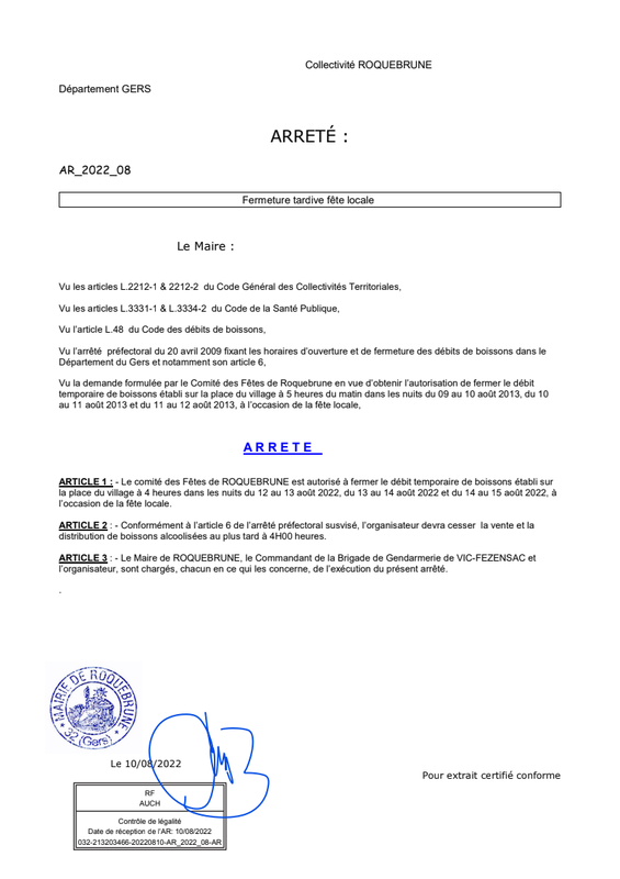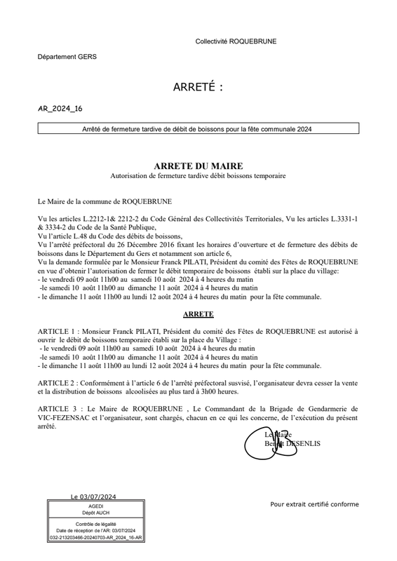 ArrêTé Fermeture Tardive De DéBit De B Oisons Pour La Fetes Communale 2024