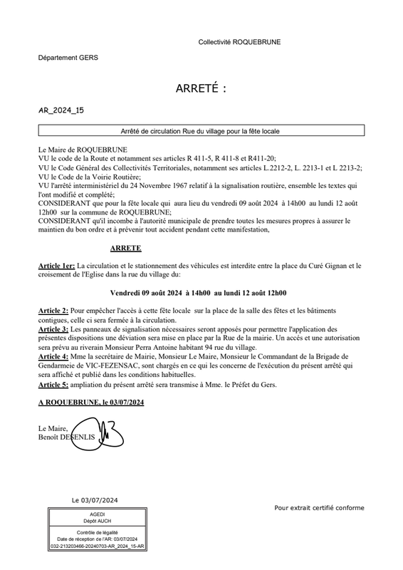 Arrete De Circulation Fete Loca Le 2024Commune De Roquebrune