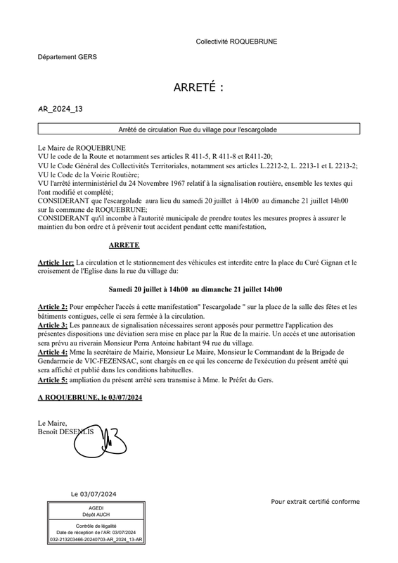Arrete De Circulation Escargola De 2024Commune De Roquebrune