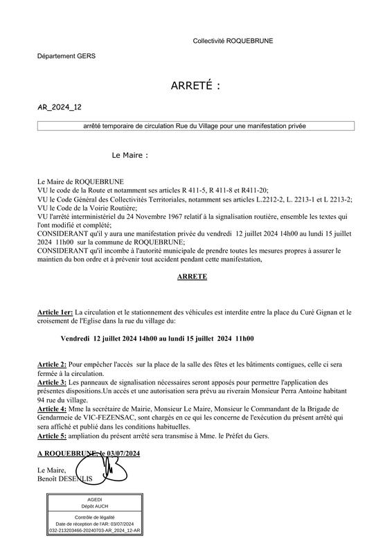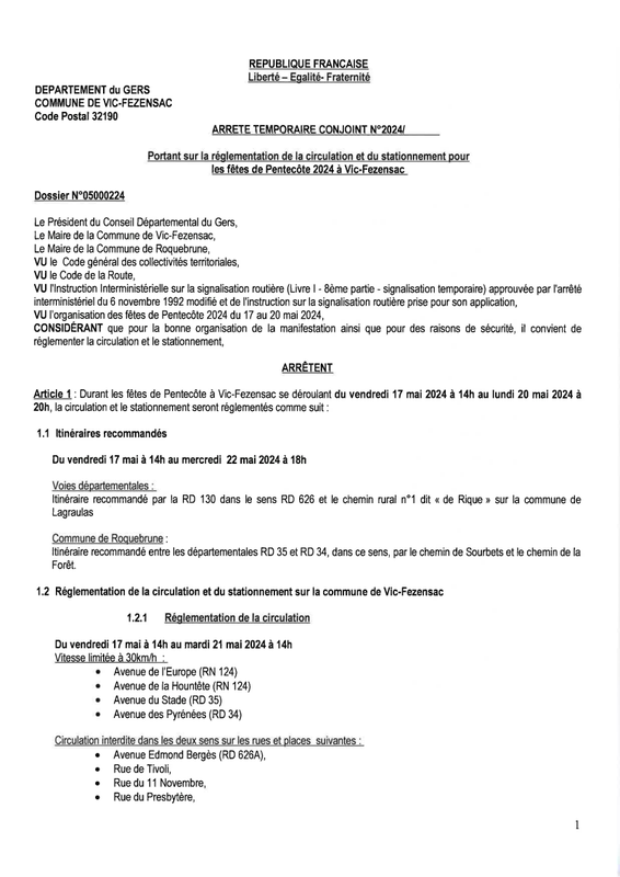 2024 Arrete Reglementation Circulation Stationnement Pentecote