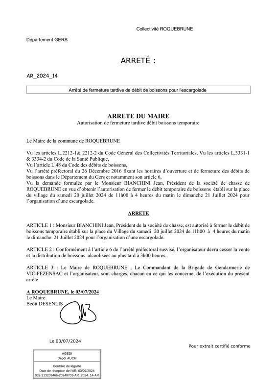 Arrete Fermeture Tardive De Debit D E Boisons Pour L'Escargolade 2024